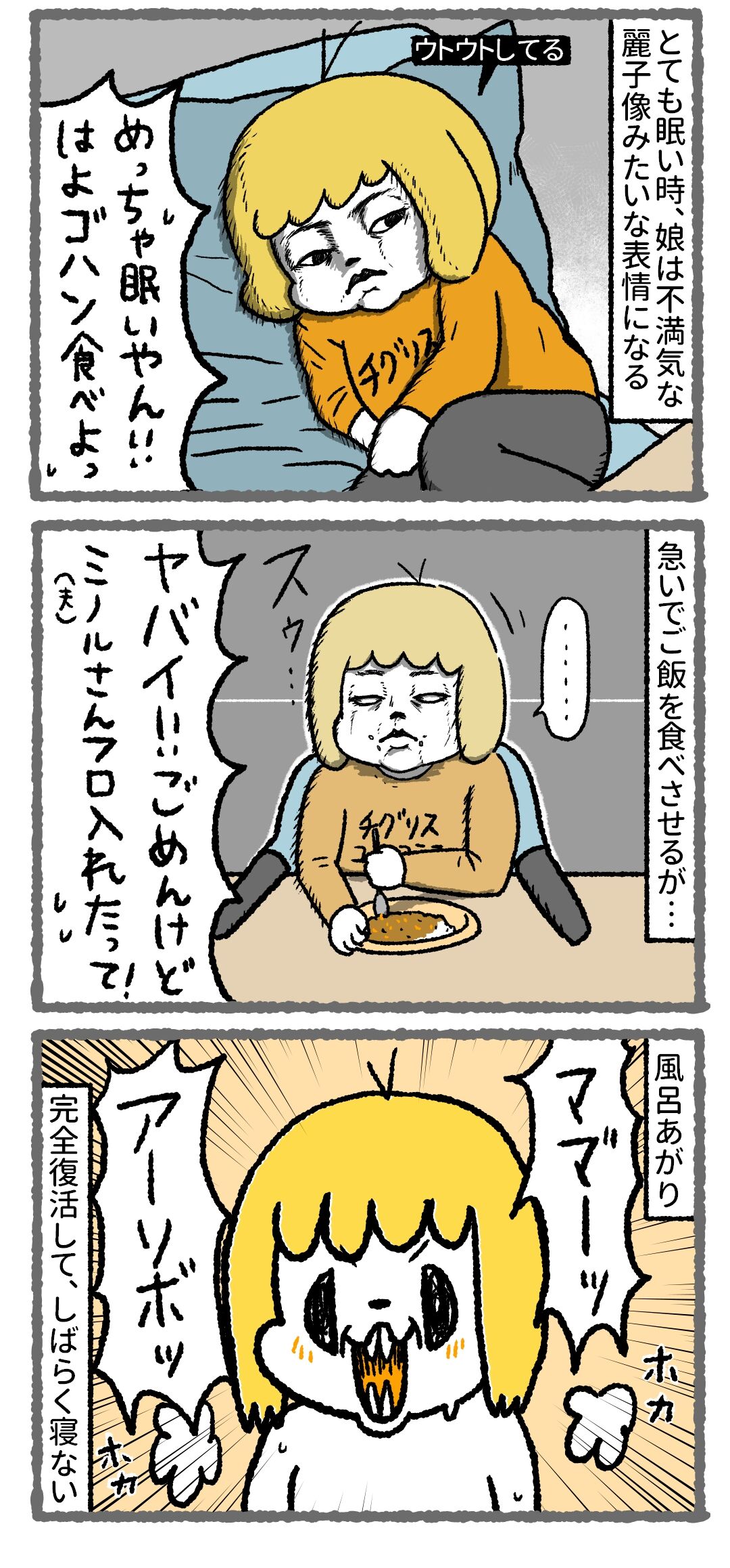 眠くなると異様に目が鋭くなるウチの娘