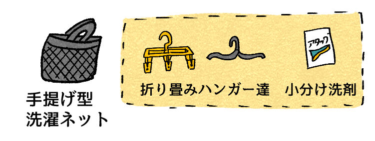 洗濯物をホテルのコインランドリーに持って行く時用に手提げ型洗濯ネットが必須。