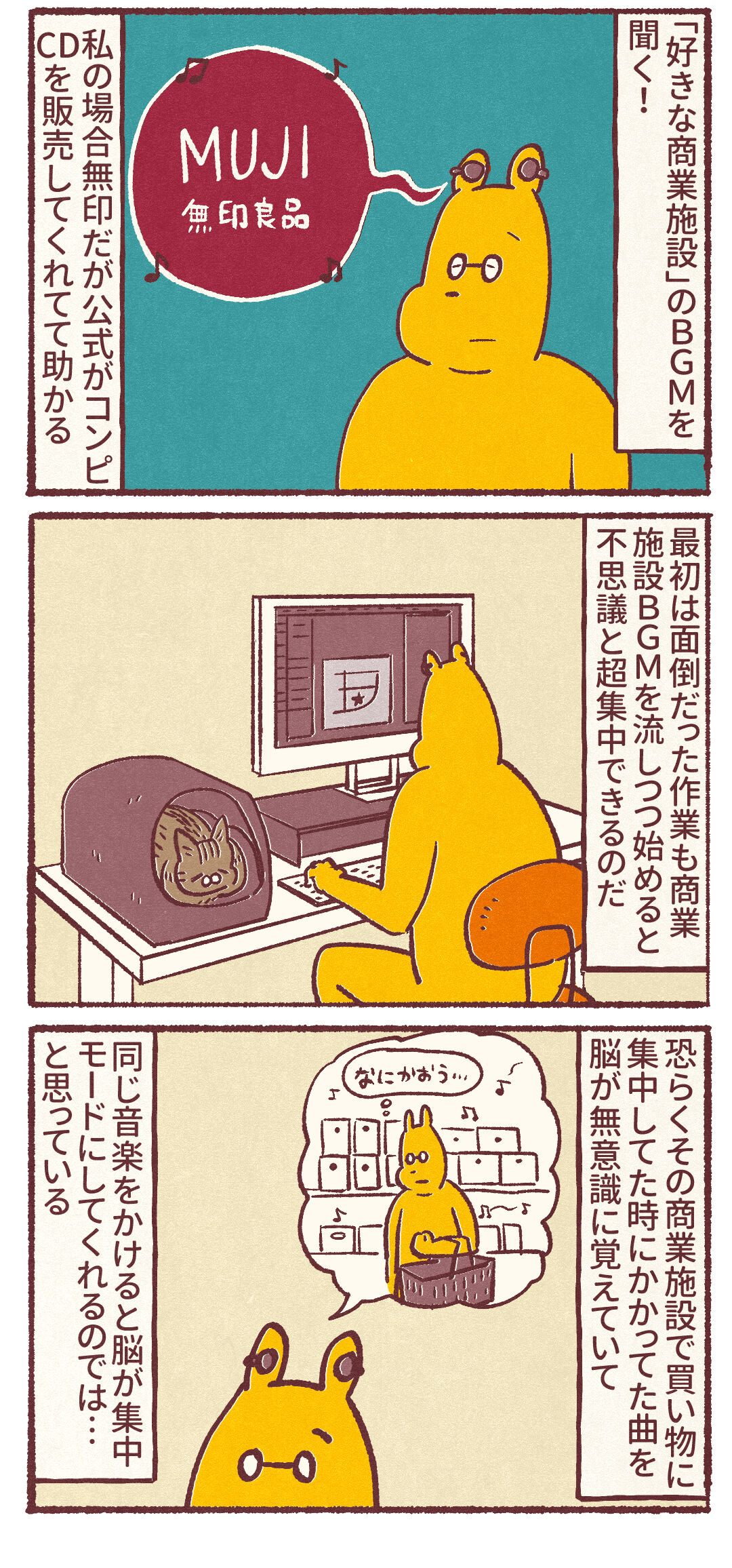 2024年11月28日 やる気が出ない時の店内BGM集中法 なので無印でコンピCDを買い漁ってる女がいたとしたら私です。ゲームのバトル音楽とかでもオススメなんですが、自分のテンションがそこまで上がってない場合は逆に集中できないんですよね。なので気分がローな場合でも軽く聞ける店内BGMをお勧めします。▼ブログ村ランキングに参加してます ▼最新のブログ更新情報が届きます!▼LINEスタンプ▼ココナラ▼スズリ 「思いつき」カテゴリの最新記事