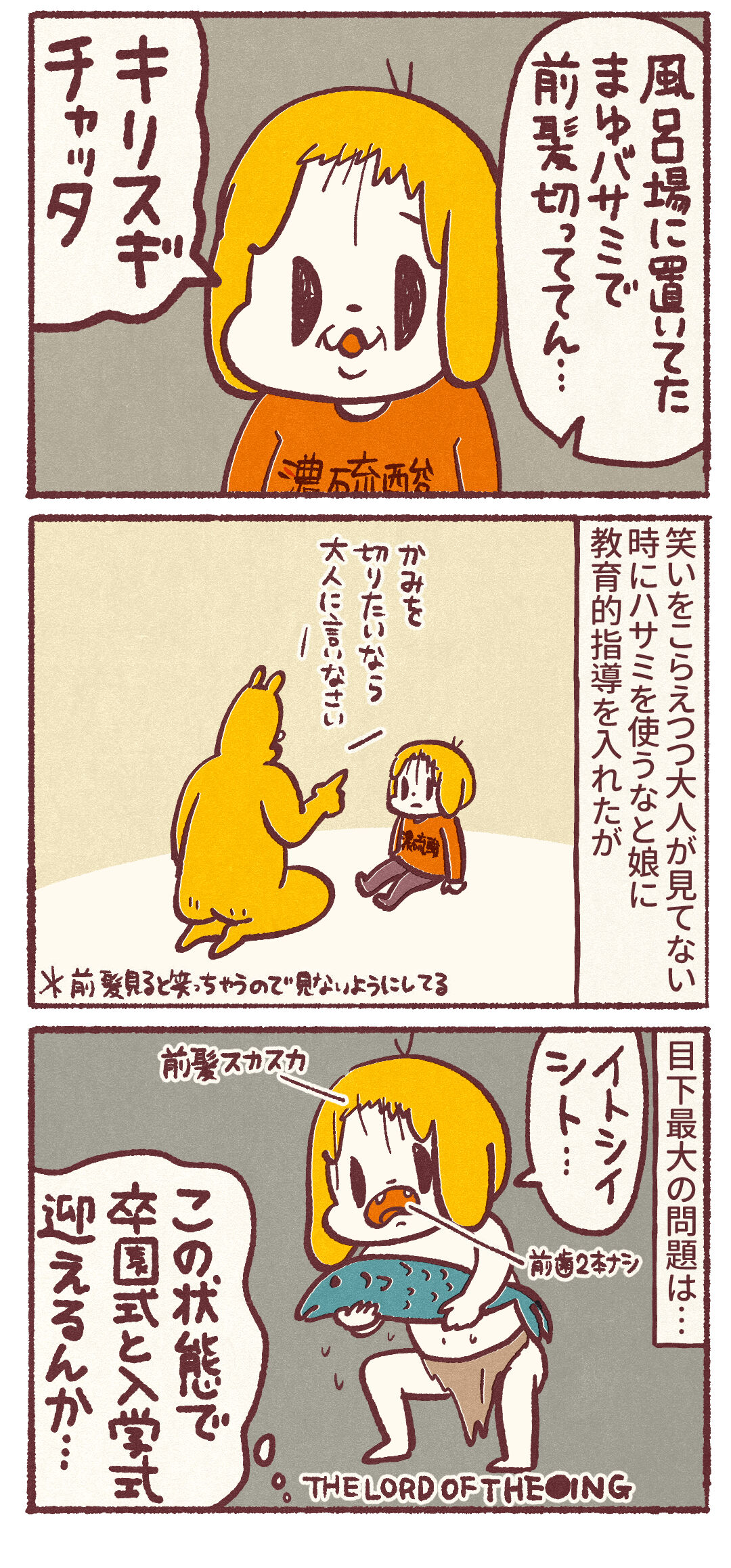 2025年03月06日 失ったモノ前歯だけに留まらず… この数ヶ月入学式の服やら準備万端にしてたとこでコレですわ夫はカチューシャで名探偵コナンの園子ちゃんみたいにすれば誤魔化せるのではと言ってたんですけど1番短いとこが坊主ぐらいの長さしかないんでどーしたもんやら…▲前髪がアバンギャルド過ぎる▼ブログ村ランキングに参加してます ▼最新のブログ更新情報が届きます!▼LINEスタンプ▼ココナラ▼スズリ 「娘」カテゴリの最新記事