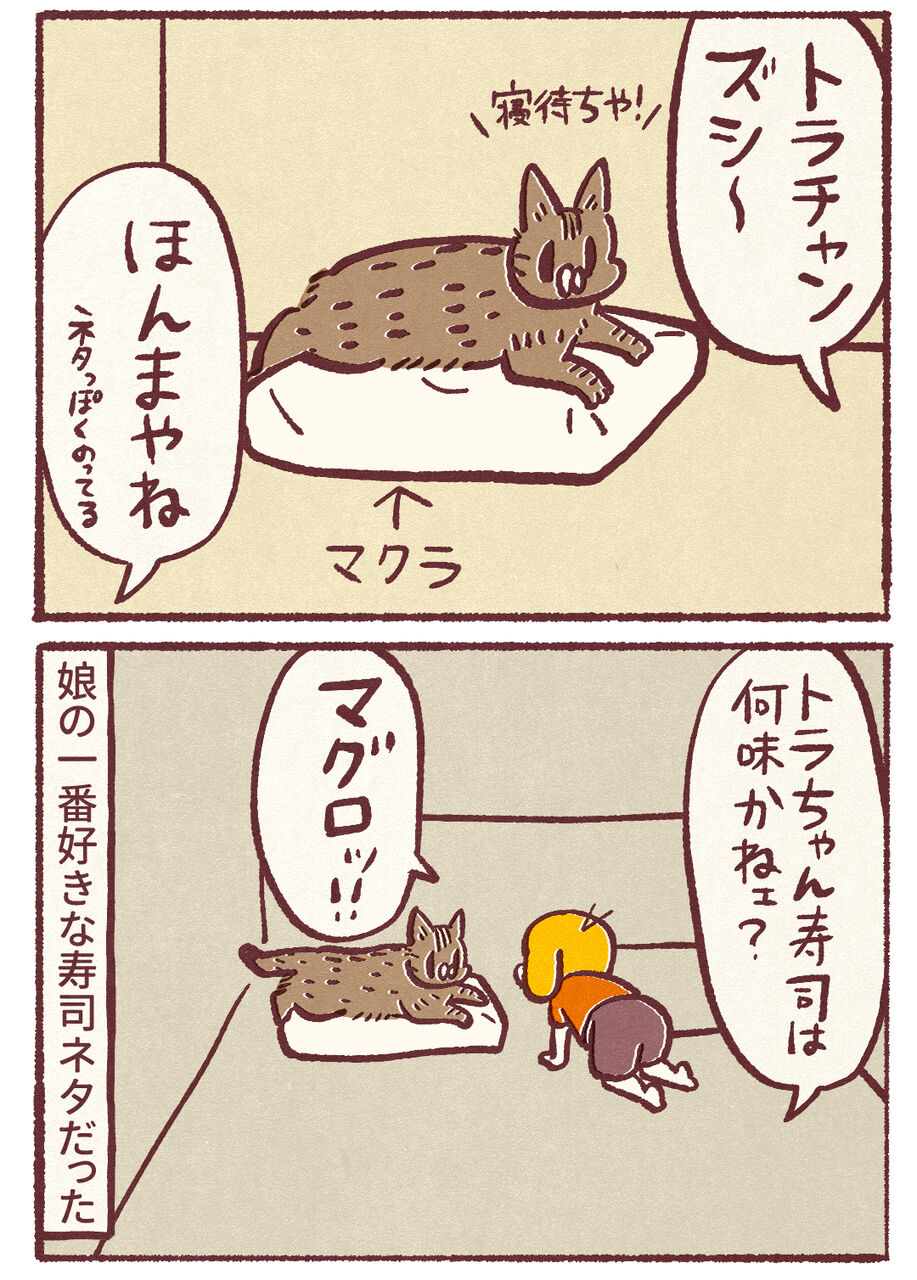 2025年09月26日 ねこ寿司 昨日のはなし↑マグロ(赤身のやつ)が好きベッドに来るムギちゃんへの牽制の為に寿司ネタになって待機するようになってます…▲猫寿司になるトラちゃん▼ブログ村ランキングに参加してます ▼最新のブログ更新情報が届きます!▼LINEスタンプ▼ココナラ▼スズリ 「娘」カテゴリの最新記事