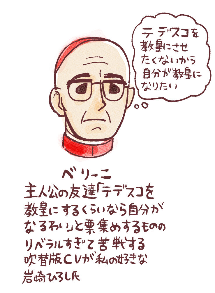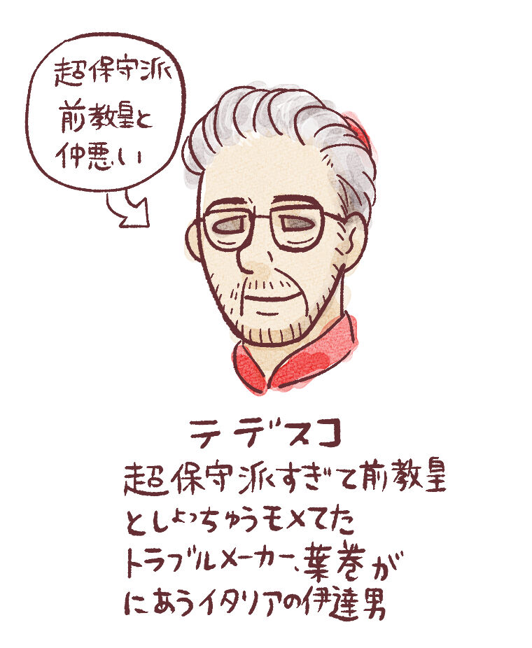 主人公の友人、後述の超保守派のテデスコを教皇にしたくなくて