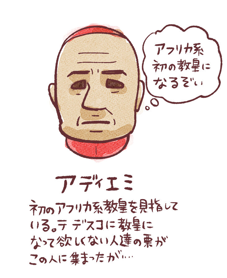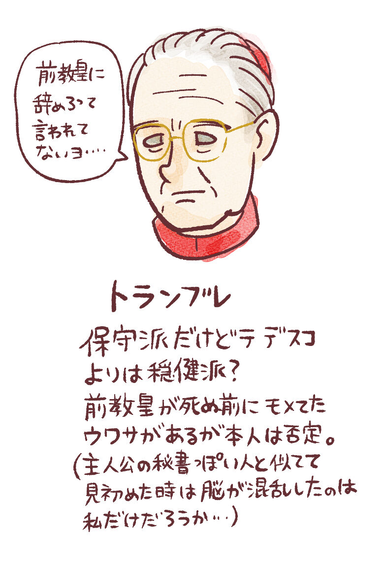 というだけの話ではあるんですが、教皇候補たちがかなり癖の強い奴等ばっかで
