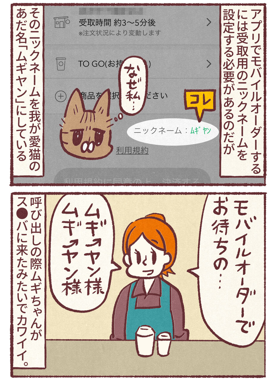 2025年12月03日 モバイルオーダー時の名前 カタカナでしか登録できんのでイントネーションが独特な感じで呼ばれるムギやん本名は地味で登録したくないし、あだ名もなんか嫌だったのでなんとなくムギちゃんの名前を借りて登録したのですが、ムギちゃんがス⚪︎バで注文してるみたいになってなんか良いんすわ▲私は毎回クソデカサイズの抹茶ティーラテとか頼んでるけど、実際本人が行ってたらめちゃ意識高い系の飲み物頼んでそう…(偏見)▼ブログ村ランキングに参加してます ▼最新のブログ更新情報が届きます!▼LINEスタンプ▼ココナラ▼スズリ 「思いつき」カテゴリの最新記事