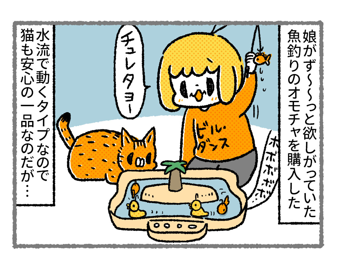 猫と釣りのオモチャ
